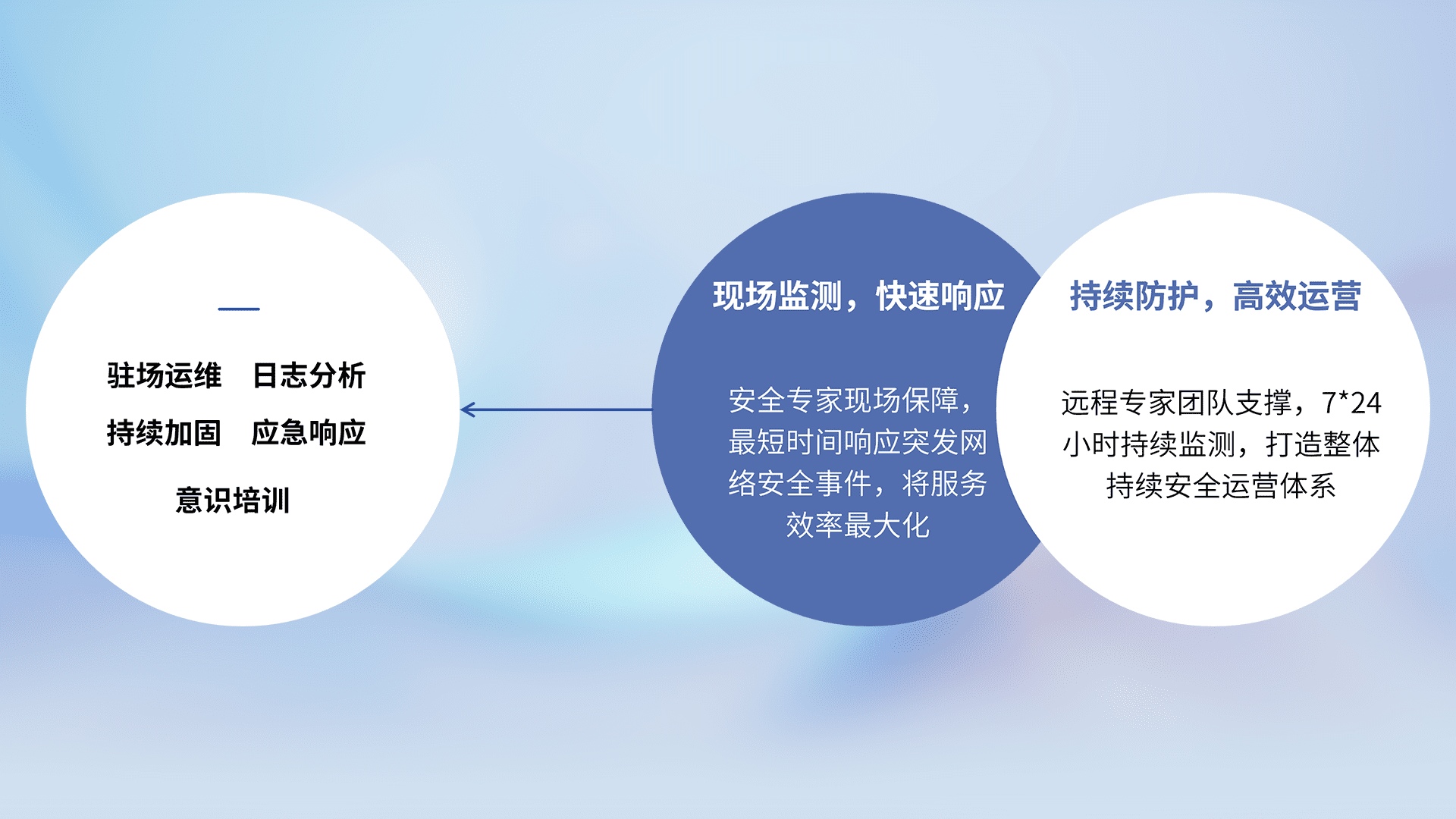 7X24小时持续监测安全事件,保持安全策略有效性,降低资产脆弱性风险,,精准拦截黑客攻击,,,,减少被黑客利用的机会,,,第一时间遏制,,,,降低损失。。